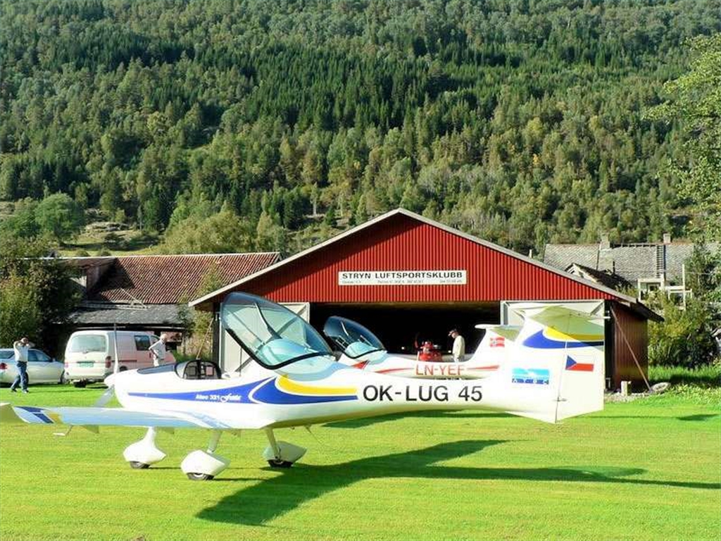 After 1 hour 30 min. of flight above beautiful nature, we finally landed on small „modeller" aerodrome of Stryn, where some few domestic UL planes are tolerated to land. The grassy runway, enclosed between high mountains with waterfalls, is only 280 meters long and cold winding river flows on its both ends. This aerodrome became our home for one nice week. We got used to aerodrome conditions early and its short runway didn´t cause any problems to our Faeta having stall speed of 58 km/h. Just that first evening, we decided to see more of fascinating fjords, glaciers, waterfalls and lakes under evening sunshine, so we left (with a heavy heart) the „welcome barbecue" and 1 hour before sunset we took-off again to discover all Nordfjord to the coast of Atlantic ocean. We could really certify that we stayed in the heart of Norway.