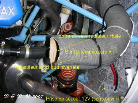 Arrivée d'air radiateur Huile - Sonde t° air - Répartiteur - Prise 12V |